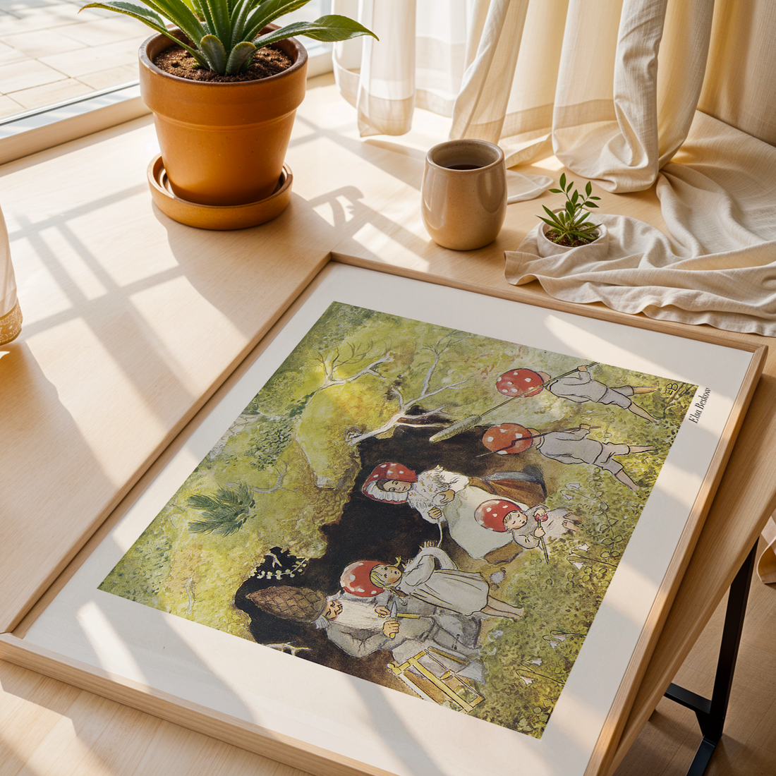Step into the whimsical world of Elsa Beskow, one of Sweden’s most beloved illustrators and authors of children’s literature. With her delicate watercolors and enchanting storytelling, Beskow’s work has captivated generations, depicting nature, childhood, and Scandinavian folklore in a way that feels both timeless and magical. Her illustrations are filled with charming details, playful characters, and a warm nostalgic feel that makes them perfect for any home.