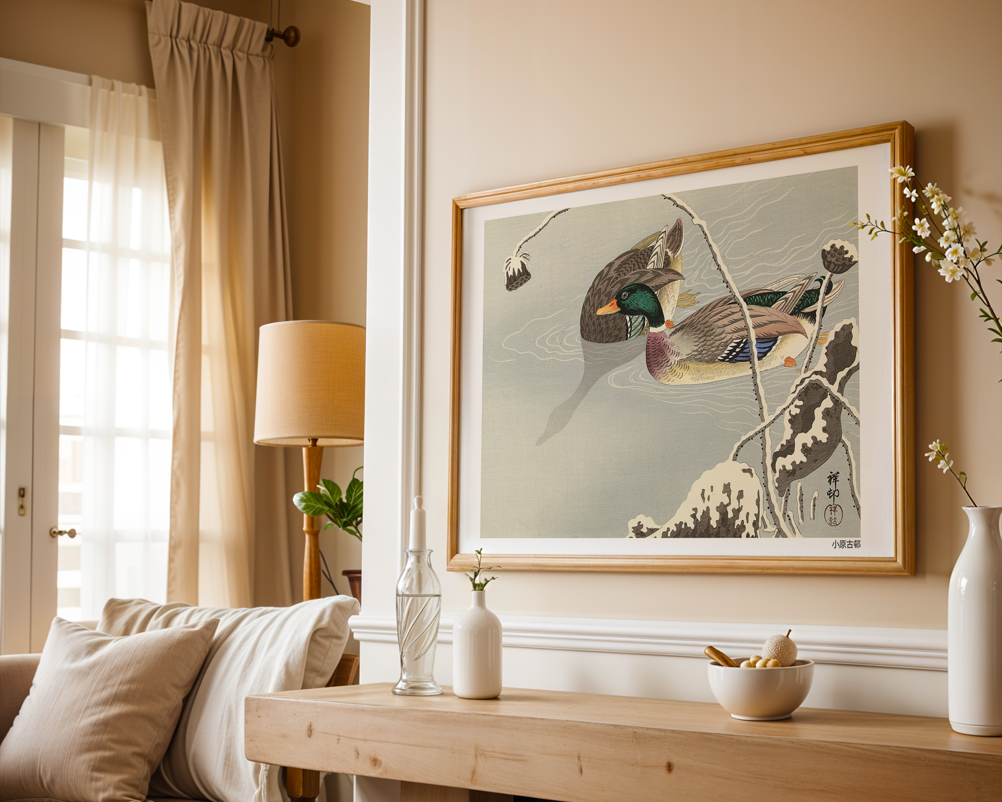 Renowned for his exquisite depictions of wildlife and flora, Ohara Koson brought an unparalleled sensitivity to the art of Japanese printmaking. His ability to convey intricate details and subtle color gradations elevates his compositions, creating artworks that feel both serene and alive—perfect for interiors that seek an elegant and nature-inspired atmosphere.