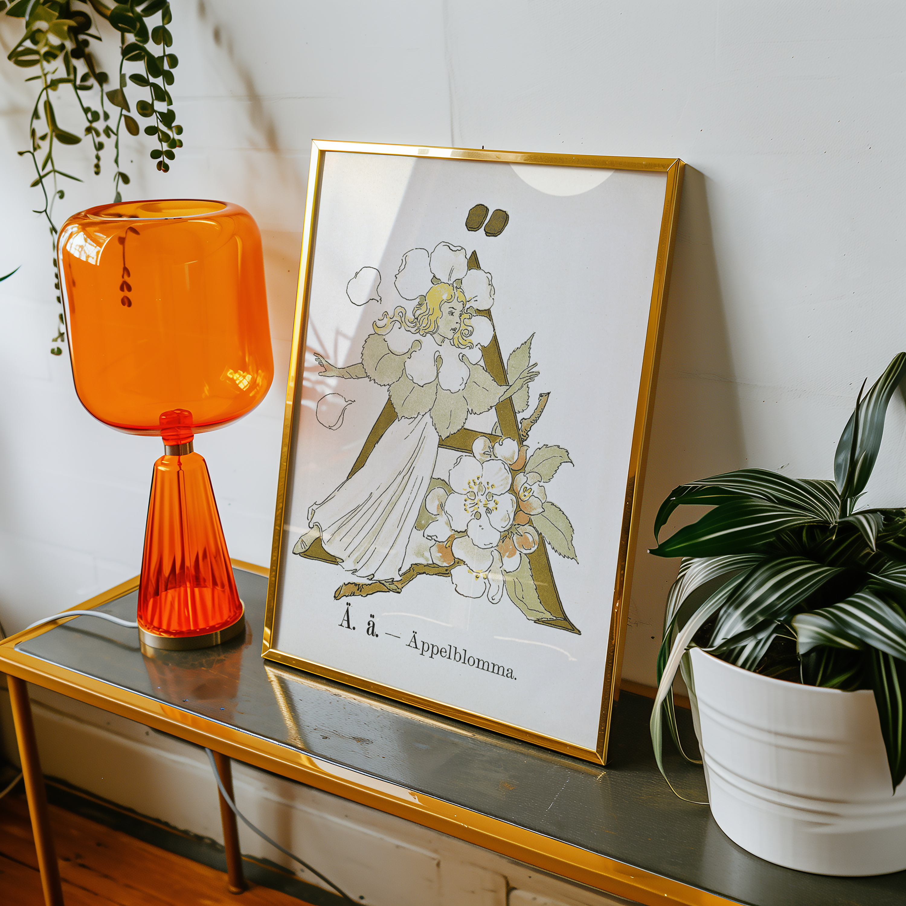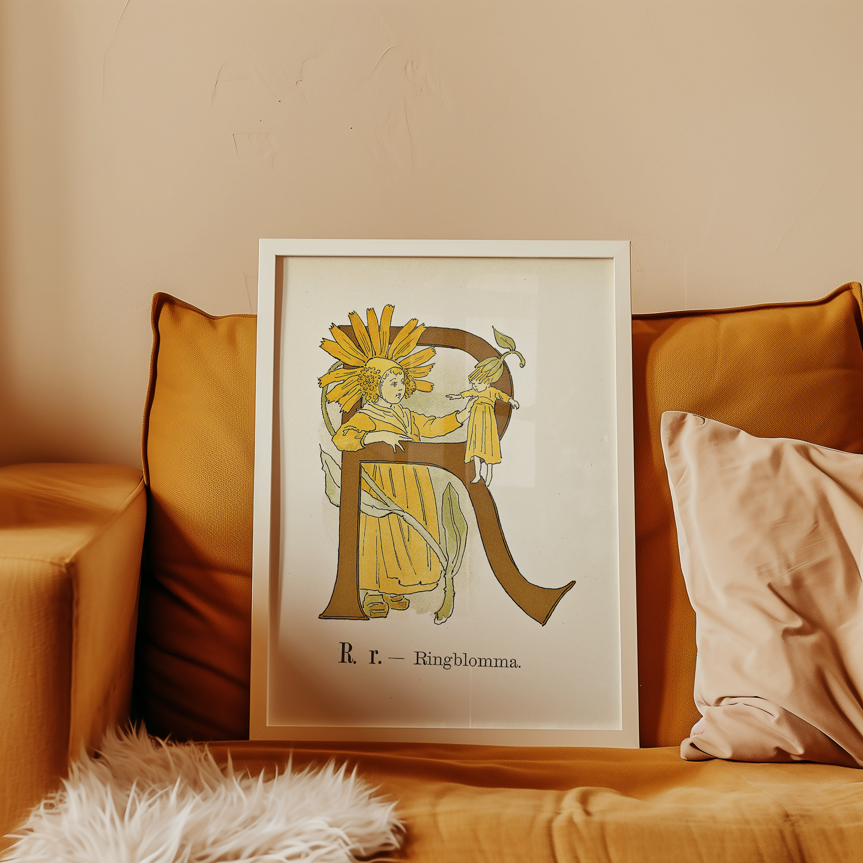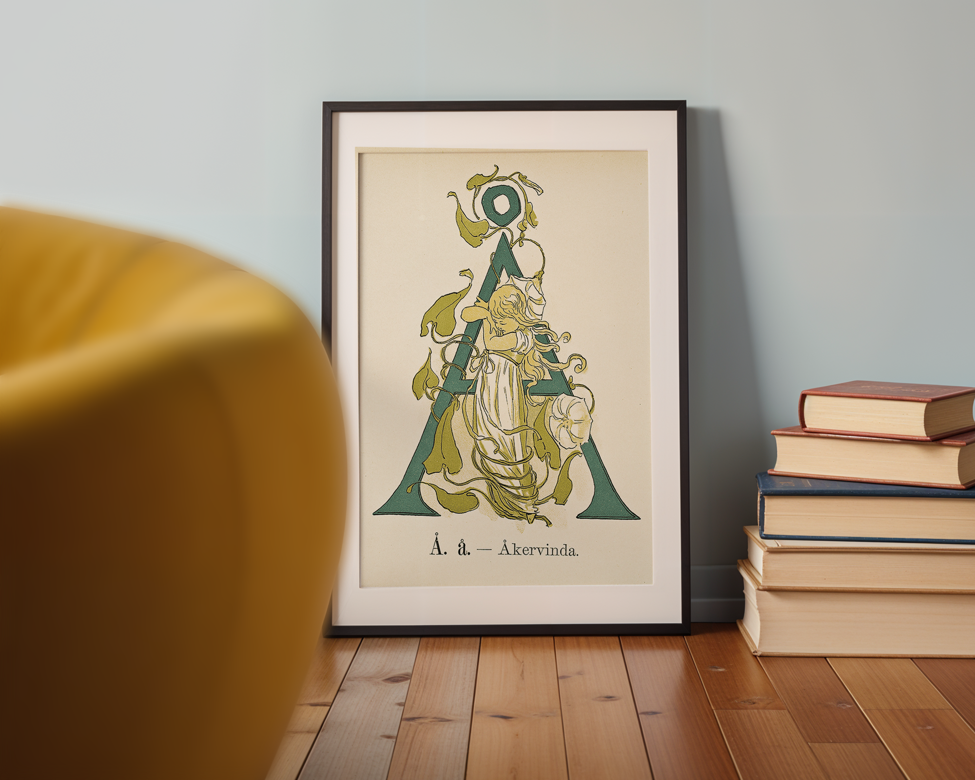 A beautifully illustrated book "Prinsarnes blomsteralfabet" by Ottilia Adelborg, where each letter is adorned with delicate floral motifs. Blending typography with botanical art, this collection captures the charm of early Swedish illustration and timeless design.
