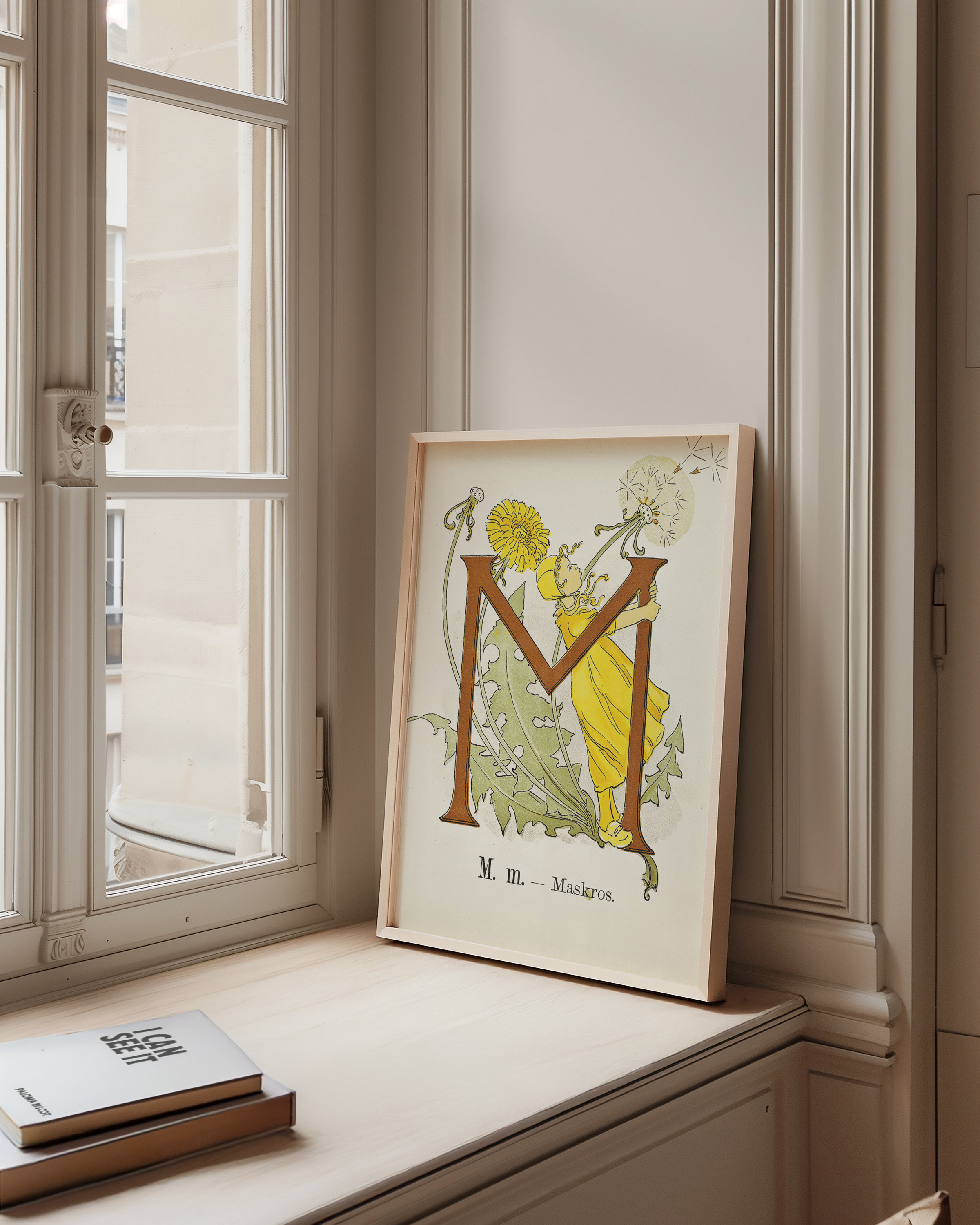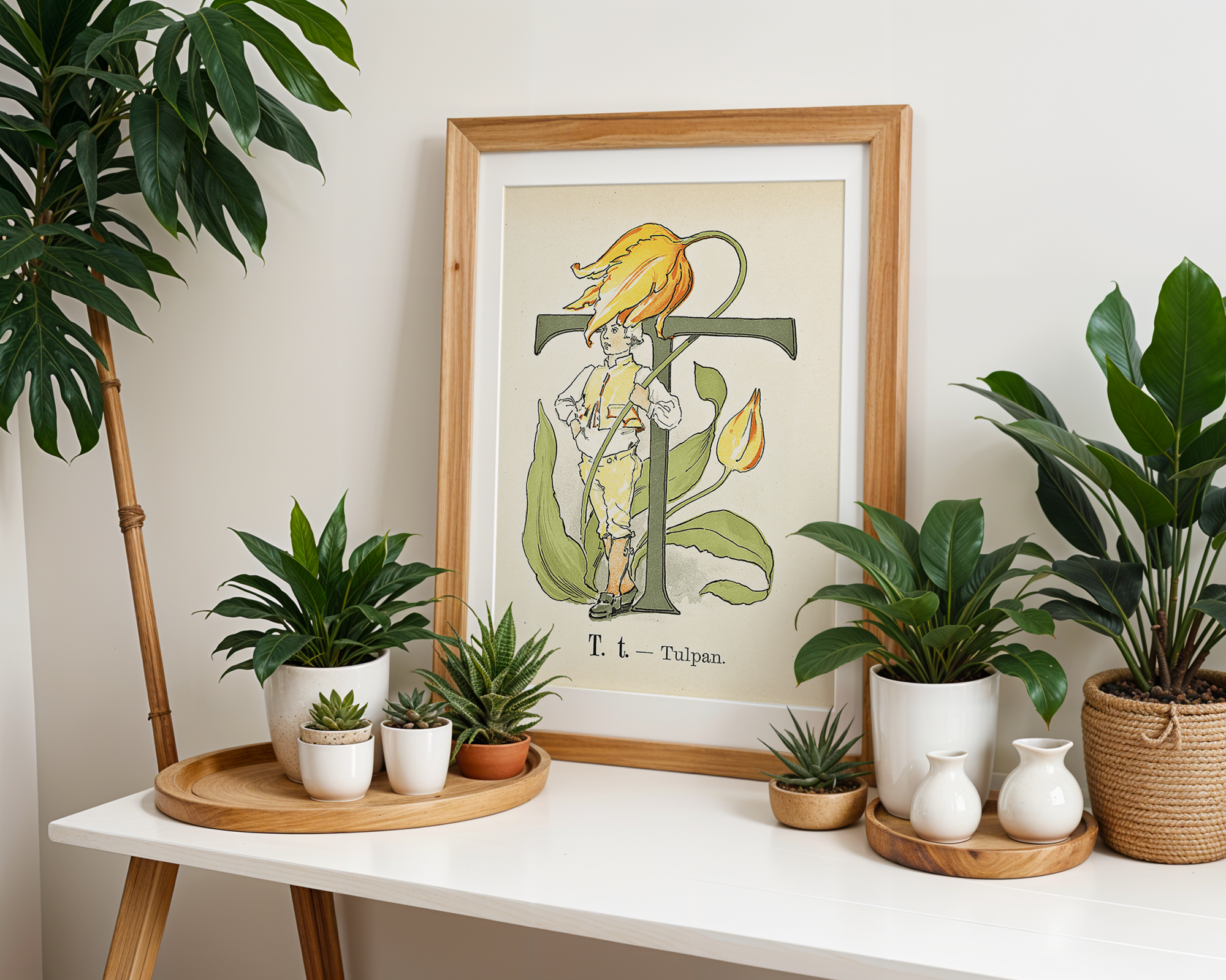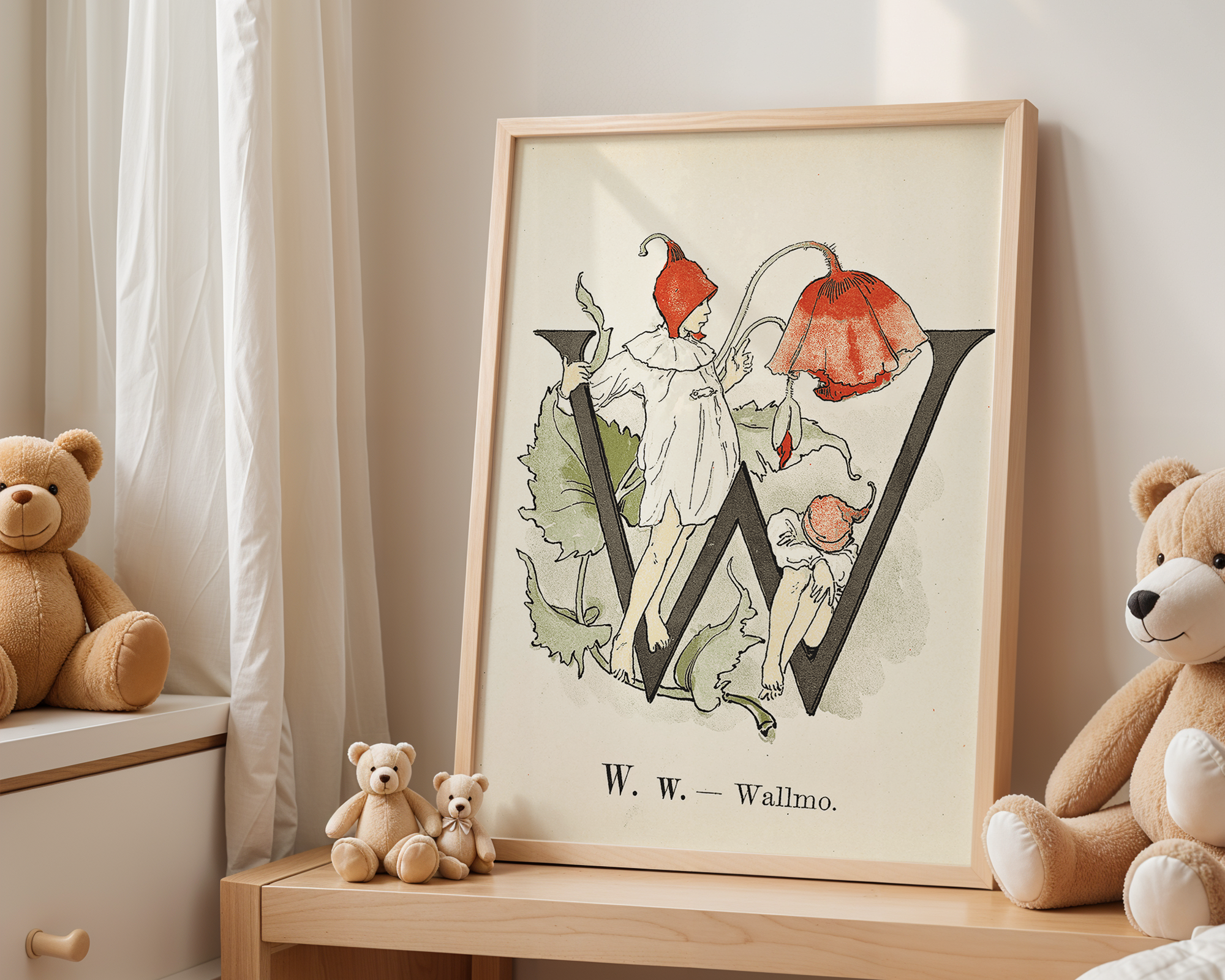 A beautifully illustrated book "Prinsarnes blomsteralfabet" by Ottilia Adelborg, where each letter is adorned with delicate floral motifs. Blending typography with botanical art, this collection captures the charm of early Swedish illustration and timeless design.