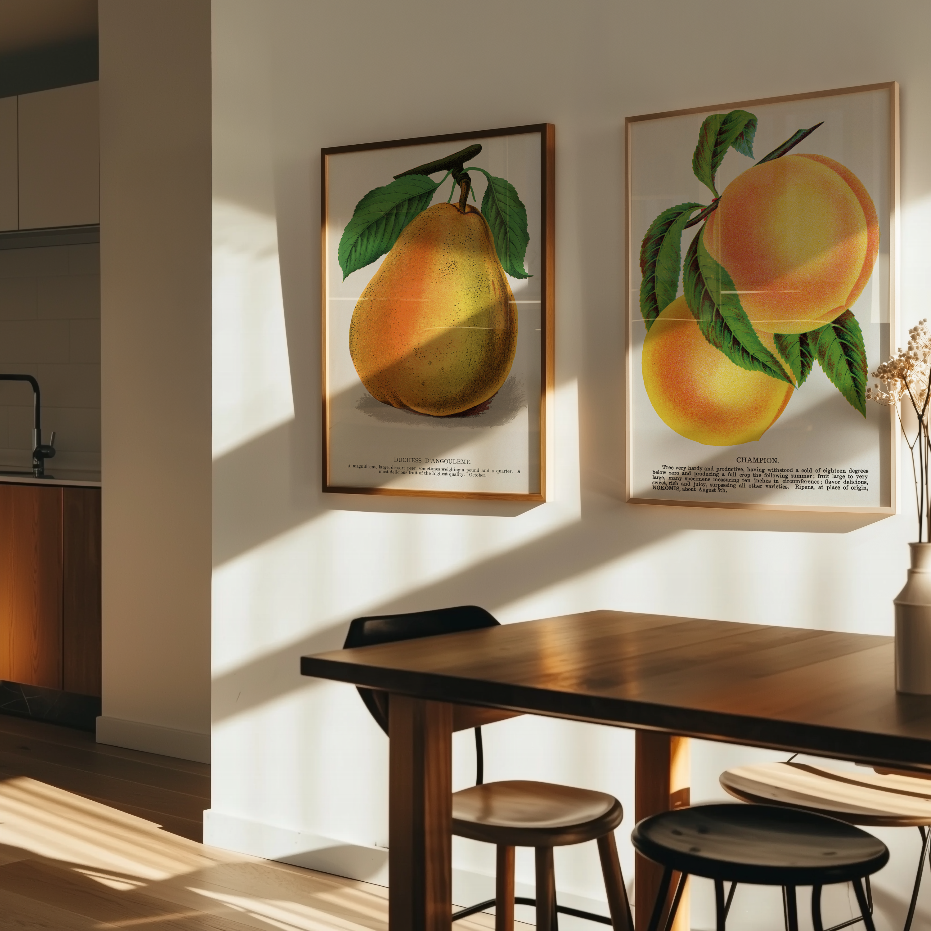The Rochester Lithographing and Printing Company brought vivid color and nostalgic charm to early 20th-century commercial art. Their fruit and flower illustrations combine advertising elegance with artistic flair, creating prints that feel both decorative and delightfully playful. These vintage posters brighten kitchens, dining spaces, and gallery walls with a joyful splash of history.