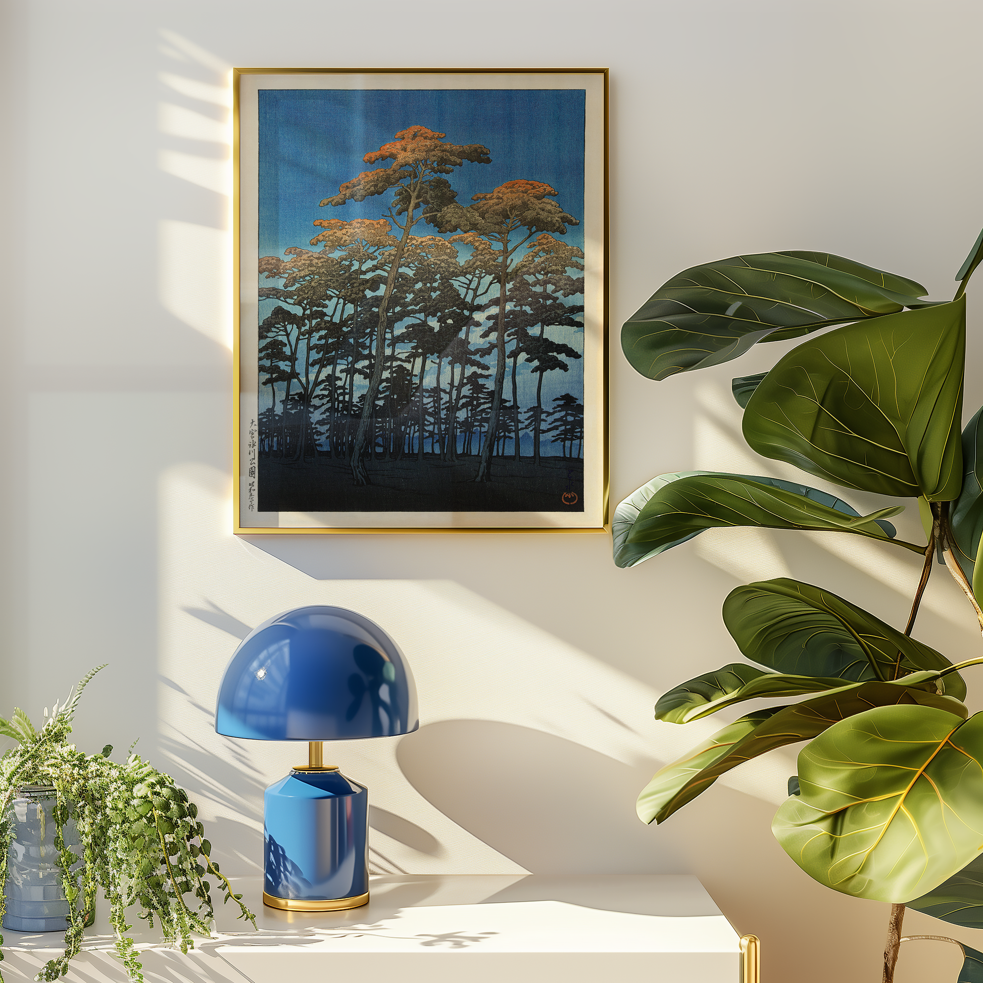 As one of Japan’s foremost woodblock artists, Kawase often found beauty in everyday stillness — a quiet bridge, a shadowed path, or the golden hour before dusk. This poster embodies that sense of calm introspection, making it a perfect addition to interiors with natural tones and refined simplicity. A piece that speaks softly yet leaves a lasting impression.