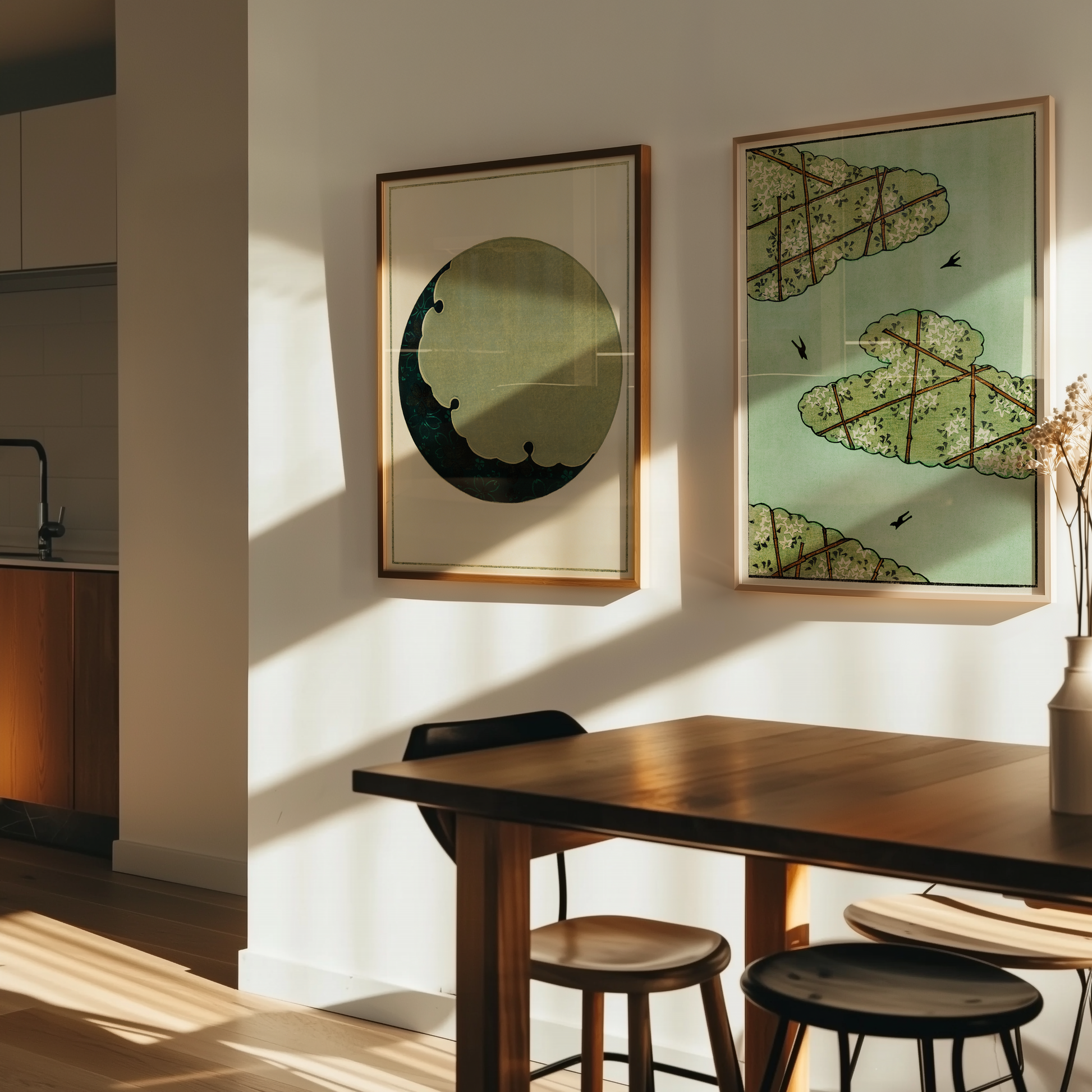 As part of the Shin Bijutsukai collection, this poster combines traditional motifs with a modern design sensibility, making it a perfect match for contemporary interiors seeking quiet sophistication.